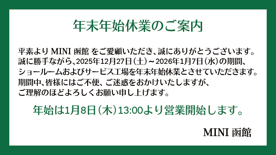 平素よりMINI函館をご愛顧いただき、誠にありがとうございます。